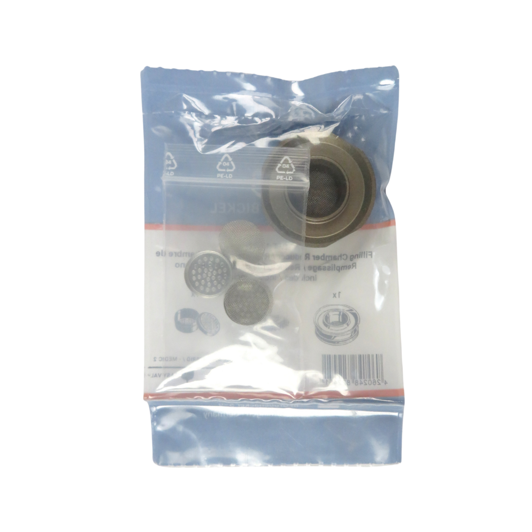 1 x Füllkammer ( 1 Stk. Deckering, 1 Stk. Normalsiebe Set 30mm, 1 Stk. Reinigungspinsel)